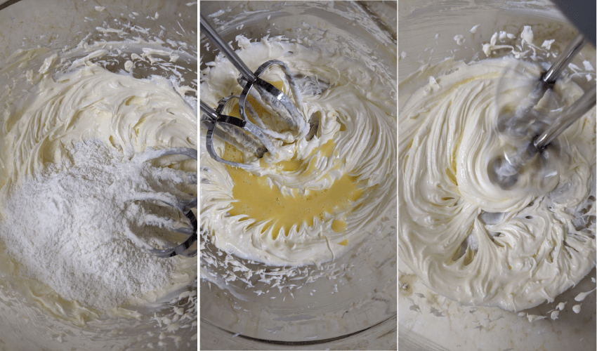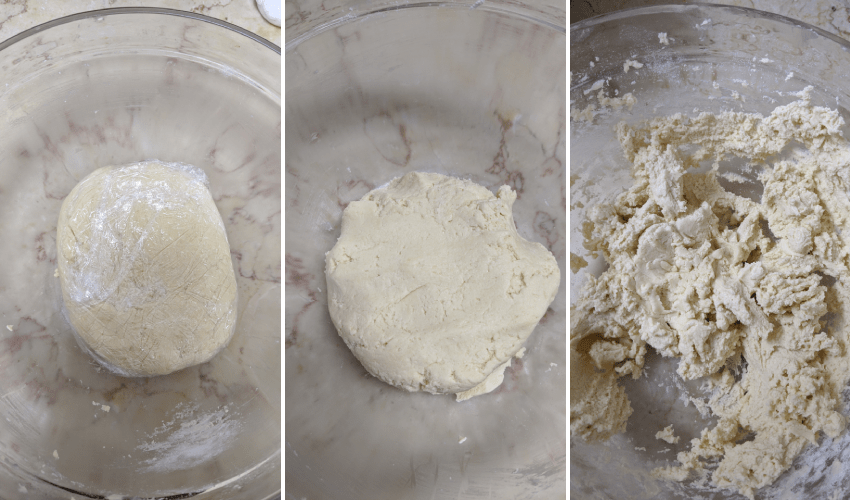 שמים את החמאה במיקסר עם וו גיטרה ומקציפים עד שהיא מבהירה מעט, מוסיפים את אבקת הסוכר וממשיכים להקציף 2-3 דקות. מגרדים את שולי הקערה בעזרת מרית, מוסיפים את הביצה ומקציפים עד לאיחוד. מוסיפים את תערובת הקמח בהדרגה, כל פעם שליש, עד לקבלת בצק רך מאוד. מעצבים את הבצק לדיסקית, עוטפים בניילון נצמד ומניחים במקרר לשעה. בינתיים מכינים את המילוי.