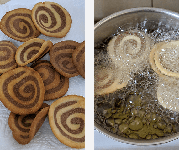 בסיר קטן מחממים שמן לחום בינוני ומטגנים את העוגיות כדקה או שתיים עד להשחמה קלה. זהירות לא לשרוף.