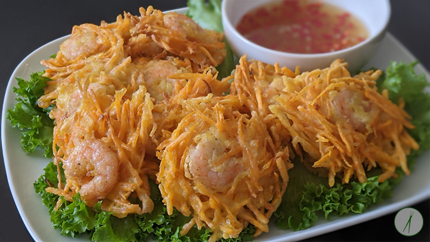 לביבות בטטה ושרימפס קריספיות ונהדרות. הלביבות האלו הן המומחיות של האנוי שם הן נקראות באן תום הו טאי, כלומר לביבות שרימפס מהאגם המערבי, על שם האגם הגובל בשטחה של האנוי. בתכלס מדובר בסוג של צ'יפס בטטה עם שרימפס במרכז – מה יכול להיות רע? 😋
