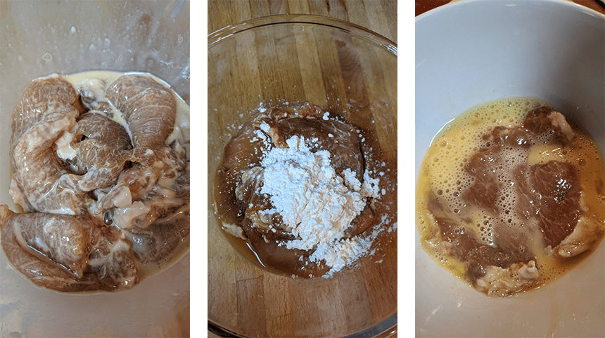 מכינים את הצלעות. בקערה טורפים 2 ביצים, מוציאים את הצלעות מהמשרה ומעבירים לקערה עם הביצים הטרופות, מוסיפים את הקורנפלור ומערבבים היטב.