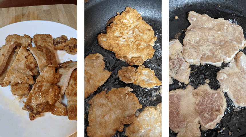 מחממים שמן בגובה 1 ס"מ במחבת על חום בינוני, מטגנים את הצלעות עד להשחמה משני הצדדים. מוציאים לצלחת וחותכים לרצועות ברוחב כ-3 ס"מ.
