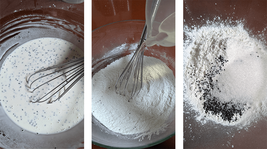 בקערה גדולה מערבבים את כל החומרים היבשים. מוסיפים מים, מערבבים לתערובת אחידה ודלילה ומניחים בצד ל-30 דקות לפחות.