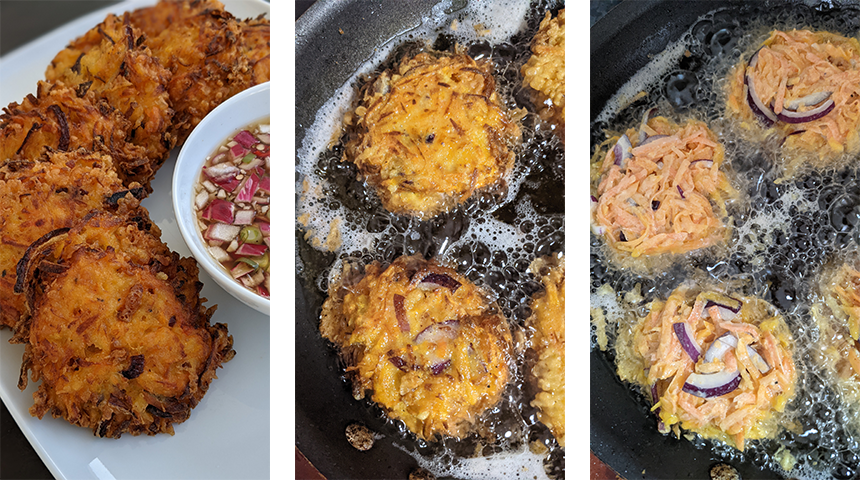 לביבות פיליפניות שמנמנות העשויות מדלעת, גזר ובצל סגול. בלביבות אלה משתמשים בדלעת יפנית כתומה ומתוקה אך כל סוג דלעת יתאים פה, רק צריך להסיר את החלקים הפנימיים הרכים. לעיתים מוסיפים ללביבות עלי מורינגה (מלונגאי) הנפוצים בפיליפינים, אך מכיוון שקשה למצוא אותם בארץ אפשר להכין את הלביבות בלעדיהם, הן עדיין יוצאות מצויין. ליד הלביבות נהוג להגיש מטבל חמצמץ (חמוץ הוא טעם נפוץ במטבח הפיליפיני) המשתלב נהדר עם הלביבות המטוגנות.