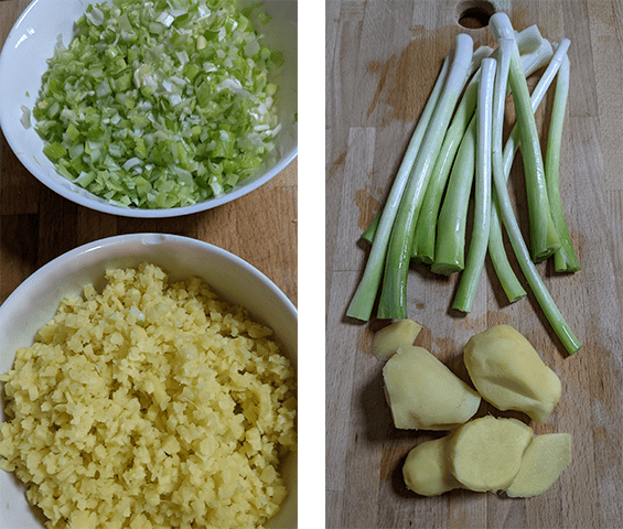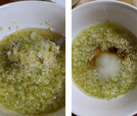 קוצצים דק בנפרד ג'ינג'ר ובצל ירוק (אפשר במעבד מזון).