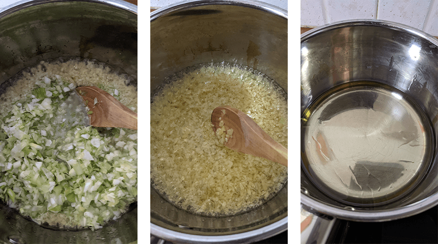 מחממים שמן בסיר על חום בינוני, מטגנים את הג'ינג'ר כדקה ומוסיפים את הבצל הירוק.