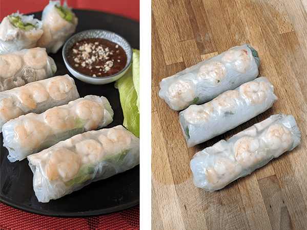 סאמר רול ויאטנמי – Gỏi cuốn. כולנו מכירים ספרינג רול מדפי אורז בגרסאות ומילויים שונים. כאן אני מביאה את הגרסה הויאטנמית המסורתית במילוי שרימפס, חזיר, אטריות אורז וירקות. את הרולים מלווה רוטב בוטנים עשיר וסמיך שרצוי לא לוותר עליו. רוב זמן ההכנה הולך על בישול הבשר וקיצוץ הירקות, אך זו מנה מאוד פשוטה וקלה להכנה. יש לשים לב לא לטבול את דפי האורז יותר מחצי דקה במים אחרת הם יהיו רכים מדי ובלתי ניתנים לגלגול. אפשר לוותר על החזיר במילוי ולהחליף את מיי הבישול במים רגילים בזמן הכנת הרוטב.