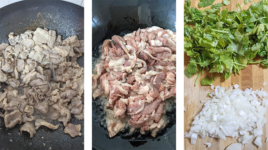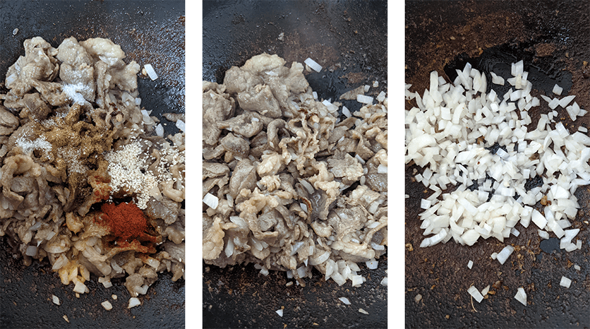 מחממים חצי כוס שמן בווק, מוסיפים את הטלה, מטגנים כשתי דקות עד להשחמה ומוציאים לצלחת. נפטרים מרוב השמן שבווק, משאירים בערך שתי כפות שמן. מוסיפים בצל קצוץ, מטגנים מעט עד שהוא מתרכך, מחזירים את הטלה ומקפיצים מעט יחד.