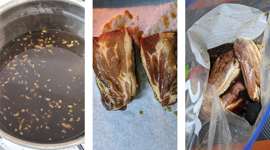 בקערה מערבבים את כל שאר המרכיבים ומוסיפים לשקית, סוגרים ומערבבים היטב כך שכל הבשר מצופה ברוטב. מניחים את השקית על צלחת ומכניסים למקרר למשך הלילה או לפחות ל-8 שעות.