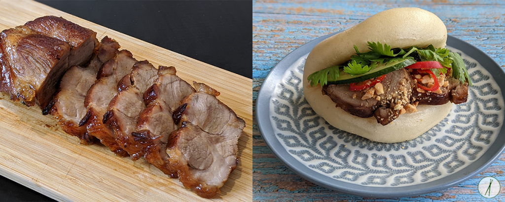 צ'ה-סיו סיני – char siu. נתחי בשר חזיר צלויים בזיגוג מתקתק ואדמדם אשר מוגשים לרוב על אורז לבן אך לעיתים גם בתוך באן עם ירקות טריים ובוטנים קלויים גרוסים או כמילוי לבאו-צה (צ'ה-סיו באו). מקור המנה הוא במטבח הסיני קנטונזי אך נדד לכל מזרח אסיה וניתן למצוא אותו מככב בהרבה מנות כדוגמת הראמן היפני שם הוא נקרא צ'ה-שו. את הצבע האדום בזיגוג ניתן להשיג במספר דרכים כשהנפוצה ביניהן היא הוספה של טופו מותסס אדום למשרה. במקום הטופו המותסס אפשר להשתמש באבקת סלק מיובש או להוסיף כמה טיפות של צבע מאכל אדום. במתכון הזה אני ויתרתי על תוספת הצבע לחלוטין.