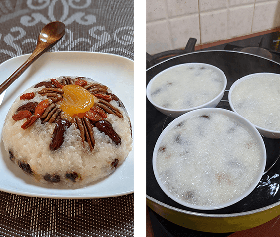 אורז שמונה האוצרות – Bābǎofàn. מנה מתוקה פופולרית בסין וטייוואן המוגשת במהלך חגיגות ראש השנה הסיני. הספרה שמונה נחשבת למיוחדת בתרבות הסינית כי ההגייה שלה מזכירה מילה אחרה שמשמעותה עושר או להיות עשיר. מנה זו מורכבת משמונה סוגים שונים של פירות יבשים ואגוזים ומאורז דביק ממותק (בחלק מהגרסאות ממלאים את מרכז המנה בממרח שעועית אדומה מתוק), השילוב של מתוק יחד עם ספרת המזל שמונה מבטיחה שתהיה שנה מתוקה ועשירה.