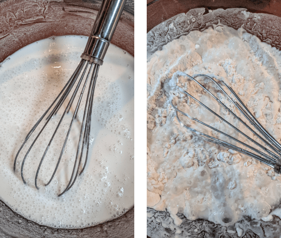 בקערה גדולה מערבבים קמח אורז, קמח תפו"א, קמח טפיוקה ומלח. מוסיפים מים ומערבבים לתערובת דלילה ואחידה ללא גושים. מכסים את הקערה בניילון נצמד ומניחים למנוחה של חצי שעה.