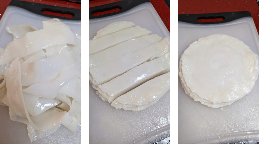 אטריות אורז טריות שמכינים בקלות במיקרוגל. בדרך כלל שיטת הבישול של אטריות אלה היא אידוי, השימוש במיקרוגל מקצר בחצי את זמן ההכנה ואם משתמשים בשני כלים ההכנה מתקצרת אפילו יותר. אפשר להשתמש בדפי האטריות להכנת צ'ואנג פאן (רול אטריות במילוי שרימפס), לחתוך לאטריות לפי העובי הרצוי ולהשתמש בכל מתכון המצריך שימוש באטריות אורז כמו במתכון של הליאנג-פי. מבחינת הטעם אין מה להשוות בין אטריות אורז יבשות לאלה הטריות ועם שיטת ההכנה הקלה הזו אין סיבה לא להכין לבד.