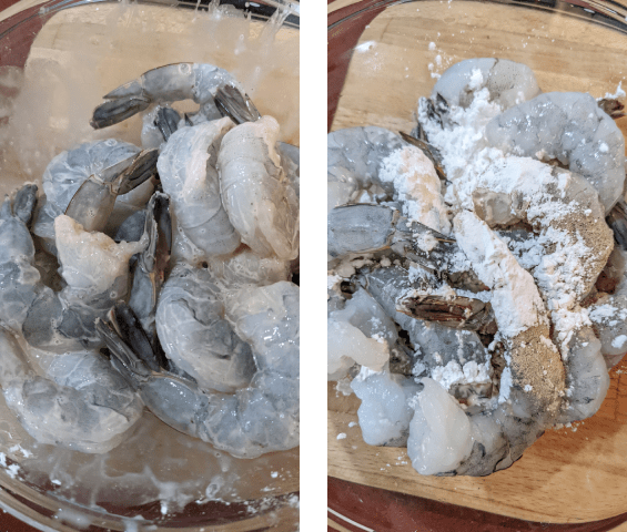בקערה מניחים שרימפס, רוטב מגי, פלפל לבן וקורנפלור, מערבבים ומניחים בצד.
