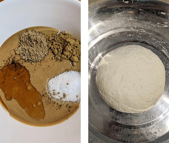 בקערה מערבבים קמח, סוכר, שמרים ומים, מאחדים ולשים כ-5 דקות עד לקבלת בצק חלק. משמנים את פני הבצק, מכסים ומתפיחים 30 דקות.