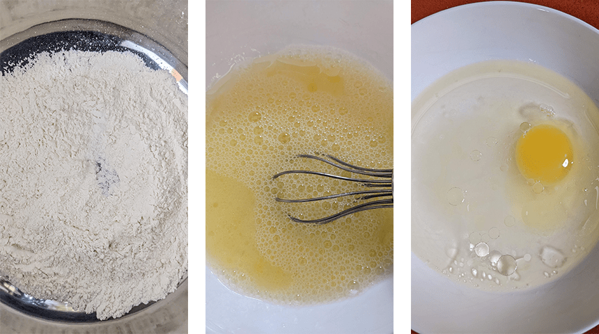 בקערה גדולה מערבבים היטב שמן, סוכר, ביצה ומים.
