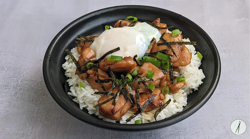 יאקיטורי דונבורי – Yakitori donburi. קערת אורז עם עוף ברוטב טריאקי מתקתק, מוגשת עם ביצת אונסן, שבבי אצת נורי ובצל ירוק קצוץ. יאקיטורי הם שיפודי עוף יפנים מסורתיים (יאקי – צלוי, טורי – עוף), אך בגרסה הזו מכינים את העוף צ'יק צ'אק במחבת ומגישים על אורז המונח בקערה (דונבורי). הרוטב שעוטף את העוף הוא רוטב טריאקי זריז שמכינים בקלות ממספר מועט של מרכיבים, אך בהחלט אפשר להשתמש ברוטב טריאקי מוכן.