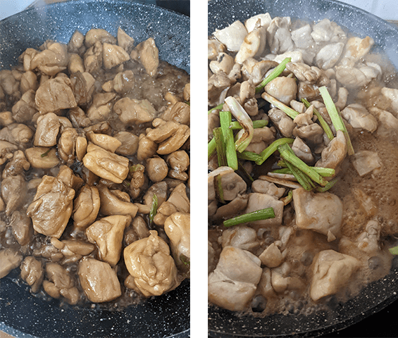 מוסיפים את הרוטב ומבשלים עד שהוא מסמיך ומצפה את העוף באופן אחיד ומורידים מהאש.