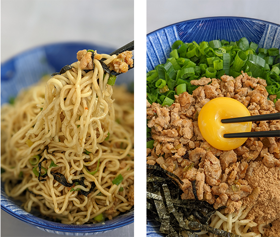 טייוואן מאזה-סובה – Taiwan mazesoba. מנת אטריות ראמן יבשה (ללא מרק) שעל אף שמה מקורה אינו בטייוואן אלא בנאגויה יפן. מדובר באטריות ראמן עם המון טעמים שמגיעים מתוספות כמו בצל ירוק קצוץ, אבקת דגים, בשר מתובל חריף וחלמון טרי של ביצה. ממש פצצת אומאמי. אפשר להחליף את החלמון הטרי בביצת אונסן (ביצה עלומה יפנית) או ביצה רכה חצויה. יש לערבב היטב את האטריות עם כל התוספות לפני האכילה. אמנם המנה מעט מורכבת להכנה, אך היא בהחלט שווה את זה.