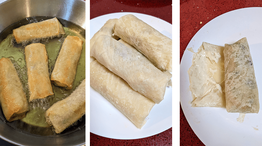 מטגנים את הספרינג רול – במחבת גבוהה ורחבה על אש בינונית-גבוהה מחממים שמן לטיגון חצי עמוק. מכניסים את הספרינג רול ומטגנים תוך כדי הפיכתם בשמן עד שהם שחומים באופן אחיד מכל הצדדים.