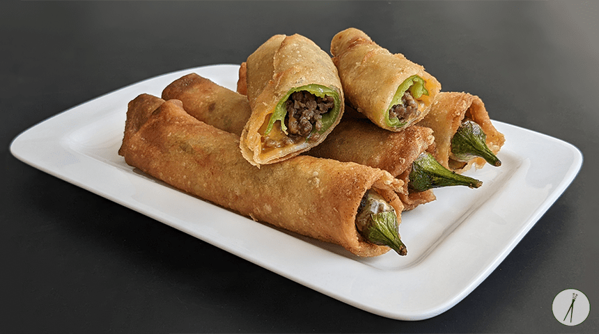 מרכיבים את הלומפיה – ממלאים פלפל צ'ילי בכף מהמלית ומניחים עליה רצועת גבינה.