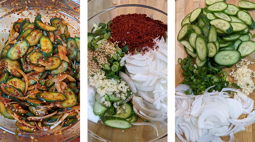 אוי מוצ'ים – oi muchim. מנת באן-צ'אן קוריאנית פופולרית, סלט מלפפונים פיקנטי המוגש לרוב לצד מנות עיקריות או בשרים בגריל ויכול לשמש כתחליף זריז לקימצ'י. סלט ארומטי, קליל ומרענן שמכינים בדקות ספורות בלבד.