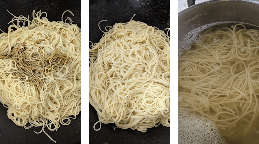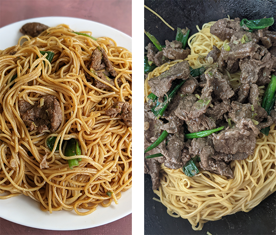 מבשלים את הנודלס לפי ההוראות שעל האריזה. מסננים את הנודלס מהמים ומעבירים לווק בו טיגנו את הבשר. מוסיפים את הרוטב ומערבבים היטב.