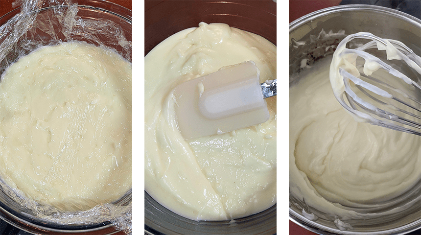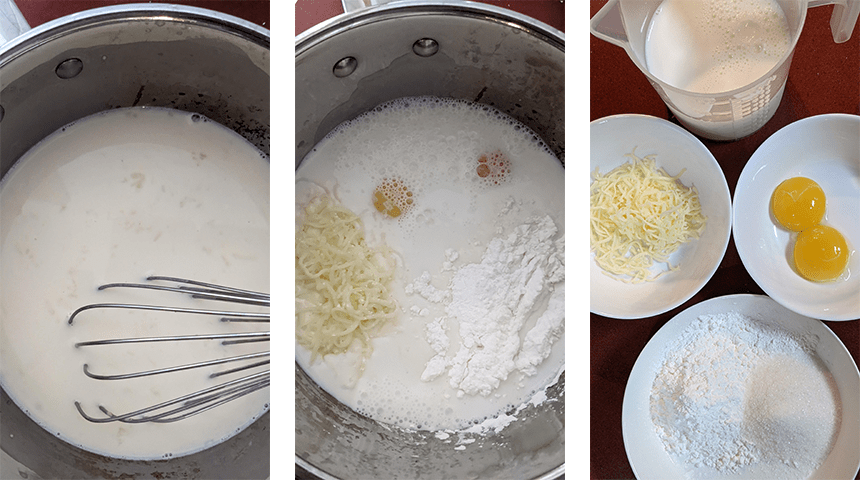 בסיר על אש בינונית שמים חלב, סוכר, קורנפלור, 2 חלמונים וגבינה.