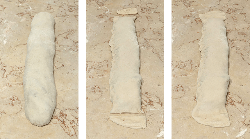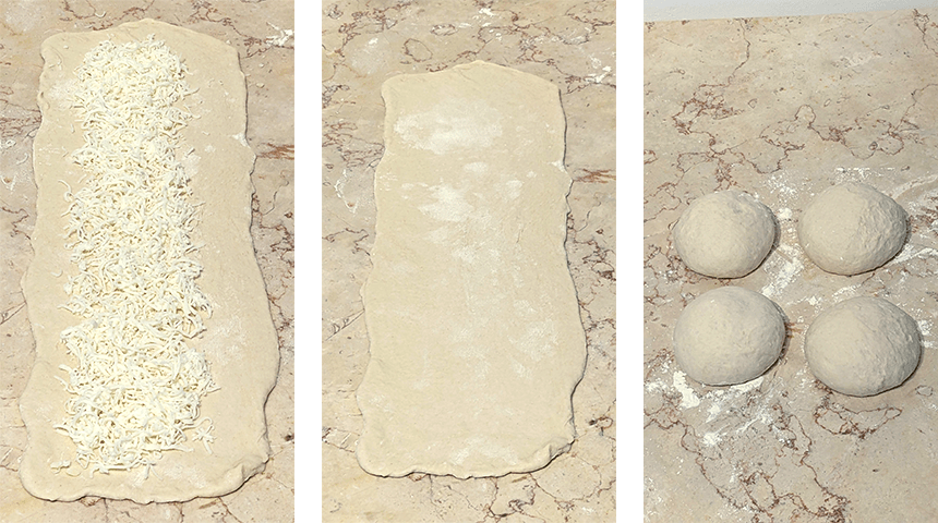 מרכיבים את הגלילים – מחלקים את הבצק ל-4 חלקים שווים, מכדררים, מכסים ומניחים ל-10 דקות.