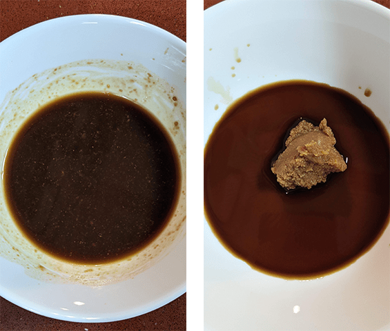 בקערית מערבבים רוטב סויה, מירין ומיסו עד שהמיסו נמס לחלוטין.