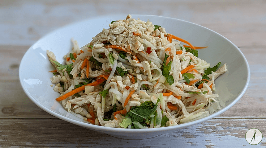 סלט עוף וקולורבי ויאטנמי – Nộm su hào thit gà. סלט קליל של עוף, קולורבי וגזר בתוספת של נענע וכוסברה שמוסיפים לסלט רעננות נפלאה. את הסלט מתבלים ברוטב ויאטנמי אופייני של צ'ילי, ליים וסוכר דקלים. סלט קל להכנה שיכול להוות ארוחה קלה בפני עצמו.