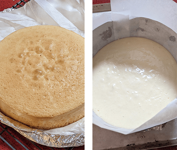 כשהעוגה קרה לחלוטין משחררים אותה מהתבנית וחוצים לשניים.