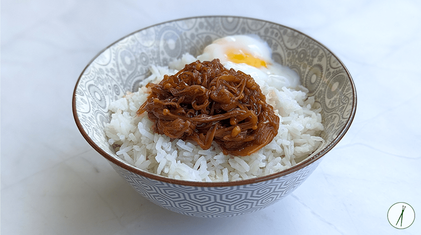 נאמטאקה – Nametake. פטריות אנוקי דקות מבושלות ברוטב יפני קלאסי של סויה, סאקה ומירין. מנה זו משמשת ביפן כתיבול לאורז (בדומה לפוריקקה) וניתן למצוא נאמטאקה מוכן בצנצנות במרכולים. אפשר להכין כמות כפולה של המתכון ולשמור בצנצנת אטומה במקרר, כך כשחפצים בארוחה זריזה שמים מעט מהנאמטאקה על אורז לבן, מניחים מעל ביצת אונסן וזוללים 😋.