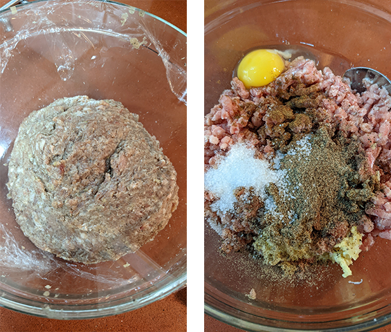 מוציאים את מילוי הבשר מהמקרר, מחלקים ל-12 חלקים שווים, יוצרים כדורים ומניחים על צלחת.