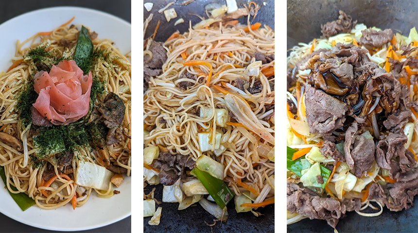 יאקי-סובה – Yakisoba. מנה יפנית של אטריות מטוגנות עם ירקות ובשר ברוטב מתקתק וסמיך הנמכרות כאוכל רחוב ברחבי יפן. ניתן גם למצוא יאקי-סובה בקומביני (חנויות נוחות) מוגשות בתוך לחמניית נקניקיה, כשהמנה מוגשת בצורה זו היא נקראת יאקי-סובה פאן (פאן = לחם).