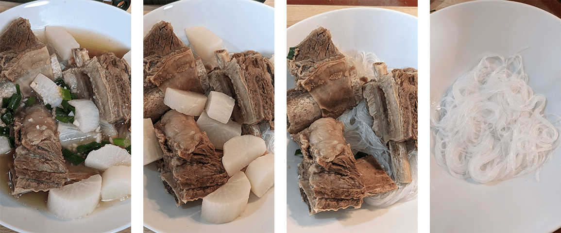 מרק צלעות בקר קוריאני – galbitang. גאלבי טאנג הוא מרק קוריאני מסורתי בעל טעם עדין המוגש באירועים מיוחדים. מרכיבי המרק העיקריים הם צלעות בקר (גאלבי), דייקון, בצל, ג'ינג'ר ושום. על מנת לקבל את הטעם הנקי האופייני למרק יש לנקות היטב את הצלעות במספר צעדים פשוטים – השרייה שלהן במים, חליטה במים רותחים ושטיפה יסודית תחת מי ברז. בסוף מתקבל מרק צלול, עדין וטעים להפליא.