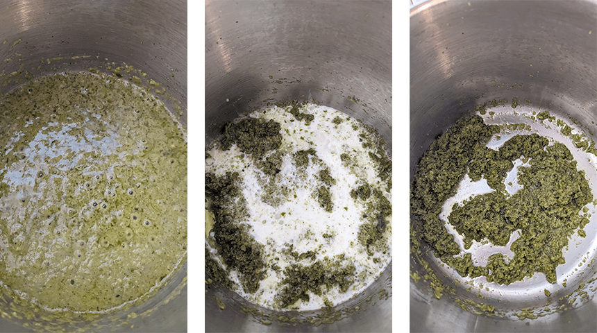 מכינים את המנה – מחממים שמן קוקוס בסיר על אש נמוכה. מוסיפים משחת קארי ומטגנים מעט לפתיחת טעמים. מוסיפים חצי כוס קרם קוקוס ומערבבים כשתי דקות.