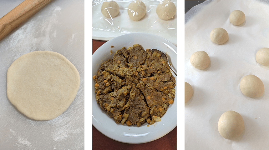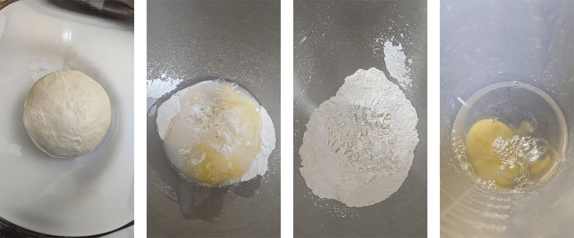 מכינים בצק – מנפים קמח לתוך קערת מיקסר, מוסיפים קורנפלור, מלח, סוכר שומרים ומערבבים מעט. מוסיפים את תערובת הביצה והמים ולשים כ-10 דקות לקבלת בצק חלק וגמיש. מעבירים את הבצק לקערה משומנת ומניחים להתפחה של כשעה או עד להכפלת הנפח.