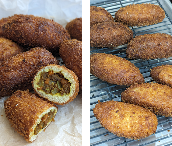 מחממים שמן לטיגון עמוק בסיר על אש בינונית-גבוהה. טובלים כל לחמניה בחלב ואז בפנקו ומכניסים לשמן החם.