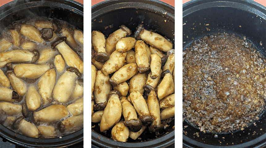 תבשיל פטריות מלך היער ויאטנמי – Nấm Đùi Gà Kho. מנה ויאטנמית מסורתית, קלילה ופשוטה להכנה. פטריות בייבי מלך היער מבושלות באיטיות ברוטב המשלב מליחות ומתיקות מעודנת. הפטריות בעלות מרקם בשרני, סופגות את הרוטב בזמן הבישול והופכות טעימות במיוחד וכיפיות לאכילה. במתכון הזה השתמשתי בבייבי פטריות מלך היער, אם לא מוצאים אפשר להשתמש בפטריות מלך היער רגילות ולחתוך אותן ל-2. מנה צמחונית/טבעונית נהדרת המוגשת באופן מסורתי לצד אורז לבן מבושל.