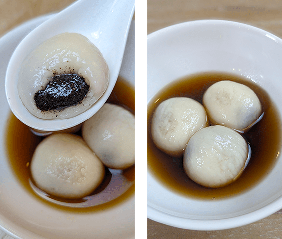 היי ג'י-מה טאנג יואן – Hēi zhīma tāngyuán. מאכל מסורתי סיני וטייוואני המוגש לרוב במהלך חגים ופסטיבלים כמו פסטיבל הפנסים כסמל לאחדות המשפחה במהלך החג. טאנג יואן אלה הם כדורי בצק אורז דביק במרקם אלסטי שיכולים להיות ממולאים במילויים שונים מתוקים או מלוחים או ללא מילוי כלל בדומה למתכון הזה. הפעם הכנתי טאנג יואן במילוי מסורתי מתוק של שומשום שחור שמגישים בסירופ קליל של סוכר חום וג'ינג'ר.