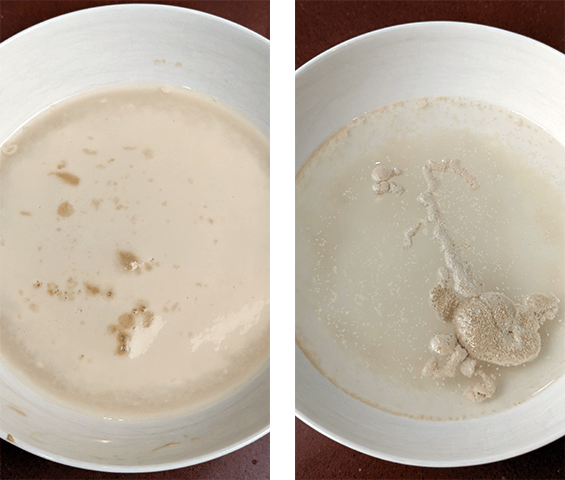 בינתיים מכינים את הבצק – בקערה קטנה מערבבים את השמרים עם המים והסוכר ומניחים ל-10 דק' עד שהשמרים מתחילים לתסוס ונוצרות בועות.