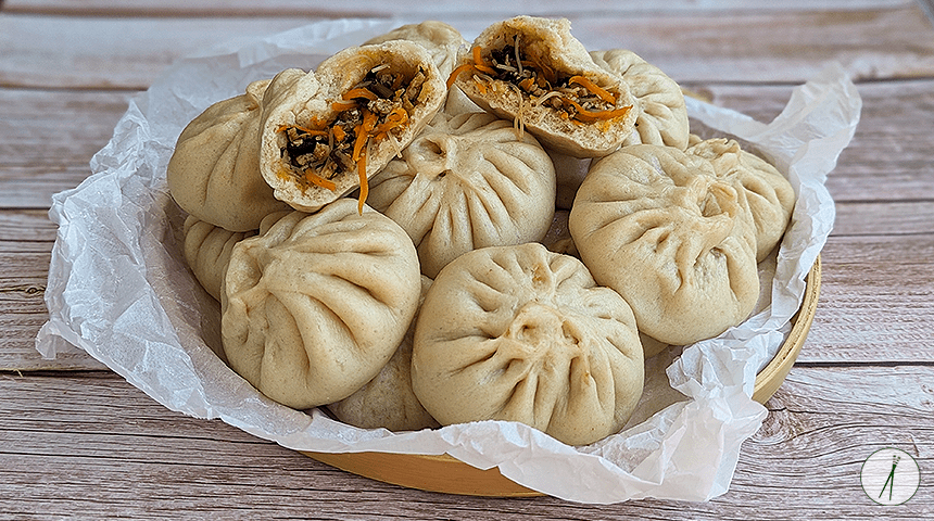 באו-צה במילוי גזר – Húluóbo bāo. לחמניות סיניות מאודות במילוי של גזר, פטריות שחורות ואטריות אורז. בסין נהוג לאכול לחמניות ממולאות ומאודות לארוחת בוקר זריזה. לרוב הלחמניות ממולאות בבשר או כרוב ועירית שומית, בגרסה הצמחונית הזו של הלחמניות המרכיב המרכזי הוא הגזר שמוסיף מתיקות עדינה למילוי ובשילוב עם שאר המרכיבים נוצרת לחמניה קלילה וכיפית לאכילה עשירה בטעמים ומרקמים.