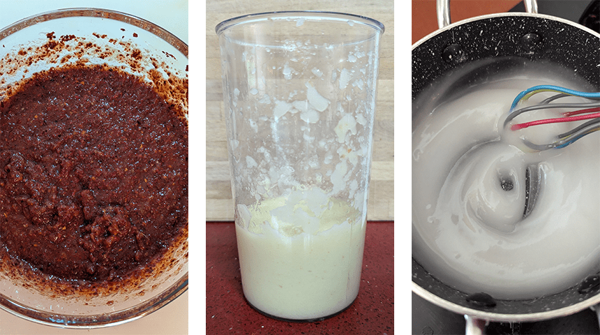 מכינים רביכה – בסיר קטן על אש בינונית שמים סוכר, מים וקמח אורז דביק. מבשלים מספר דקות עד שהתערובת מסמיכה, מסירים מהאש ומניחים לצינון.