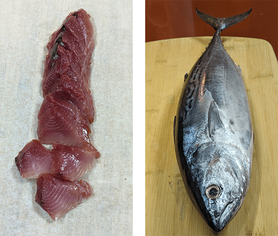 - 600 גר' דג טונה או טונית נא וטרי (אפשר להחליף בסלמון נא)
