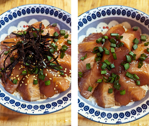 זוקה דון – zuke don. מנת דונבורי יפנית הכוללת פרוסות דג נא, לרוב טונה, אני השתמשתי בטונית אך אפשר גם להשתמש בסלמון נא. את פרוסות הדג משרים במרינדה של סויה, מירין וסאקה ומגישים מעל קערת אורז (דונבורי או דון בקיצור). פירוש המילה "זוקה" בשם המנה הוא "מושרה" או "כבוש" והיא מתייחסת להשרייה של הדג לפני ההגשה. המנה לרוב מוגשת עם תוספות כמו אצות נורי, בצל ירוק ושומשום קלוי המעניקים רובד טעמים נוסף למנה.