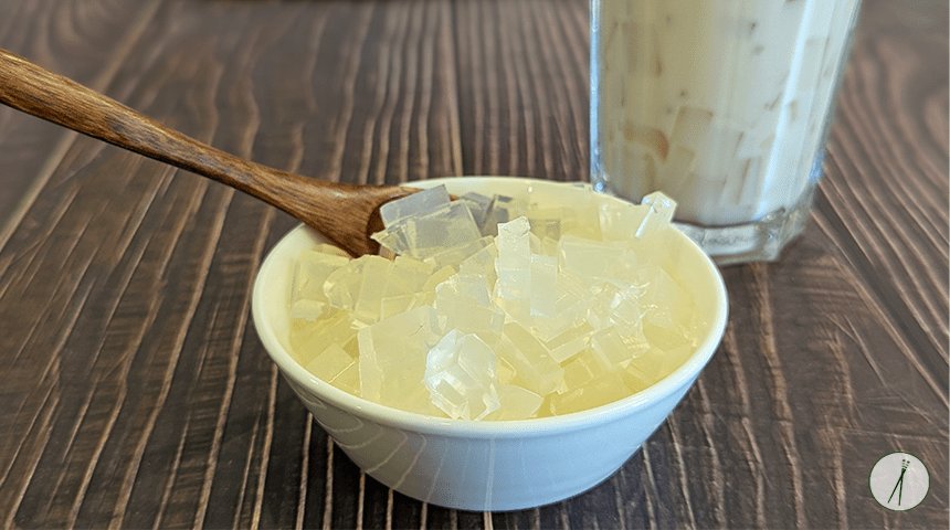 ייה גוואו צ'ה – Yē guǒ chá. תה עם קוביות ג'לי קוקוס. אחת התוספות הפופולריות למשקאות תה (בדרך כלל קרים), קוביות של ג'לי קוקוס הנקרא נאטה דה קוקו, בעלות מרקם לעיס וצמיגי שכיף ללעוס תוך כדי שתייה. נאטה דה קוקו הומצא בפיליפינים ומשמש כתוספת הקינוחים שונים כמו מנגו באנגו, סלט פירות פיליפיני והאלו האלו, אך בעקבות עליית הפופולריות של תה בובה (כדורי טפיוקה) שהגיע מטייוואן בשנות השמונים, עלה הביקוש לתוספות בעלות מרקמים שונים ואחת מהן היא קוביות הקוקוס האלה. בין התוספות השונות אפשר למצוא גם חתיכות אלוורה, פודינג ואפילו גלידה. הכנת ג'לי הקוקוס נעשית על ידי פרמנטציה של מי קוקוס עם בקטרייה מיוחדת בתהליך ארוך שמעניק להם את המרקם הספציפי שלהם, בהכנה ביתית אנחנו נשתמש באגר אגר, חומר מקריש על בסיס אצות, שנפוץ מאוד בהכנת קינוחים תאילנדיים. המרקם קצת שונה אבל עדיין מדובר בתוספת כיפית ביותר למשקה הקר שלכם וההכנה ממש ממש פשוטה.