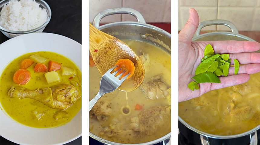 מוסיפים את עלי הקפיר ליים ומבשלים 10 דקות נוספות או עד שהגזר רך אך לא מתפורר.