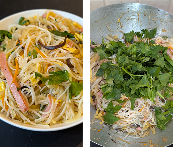 אטריות שעועית מוקפצות ויאטנמית – Miến Xào Thập Cẩm. מְיֵין סַאוּ טַאפּ קַאם היא אחת ממנות האטריות הנפוצות ביותר במטבח הויאטנמי. פירוש השם בתרגום חופשי הוא "אטריות שעועית מוקפצות עם הכל מהכל". האטריות מוקפצות עם חלבון כלשהו, לרוב ג'יו (נקניק ויאטנמי) ומגוון של ירקות פריכים כמו קולורבי, גזר ופטריות אוזן שחורות. יש למנה גם משמעות תרבותית עמוקה והיא חלק בלתי נפרד משולחן החג בראש השנה הוייטנאמי (Tet) ובאירועים משפחתיים בזכות המראה הצבעוני שלה המסמל שפע ומזל טוב. מעבר לזה היא נחשבת למנה בריאה יחסית בשל השימוש באטריות נטולות גלוטן ושפע הירקות הטריים המשולבים בה.