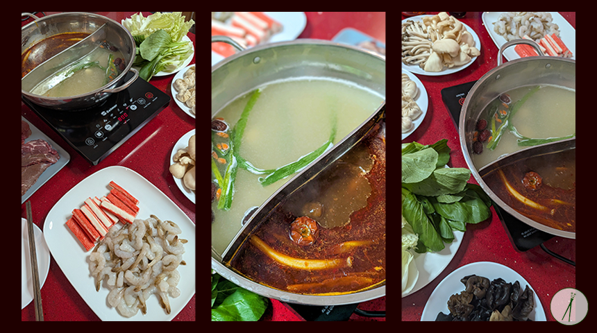 הוט-פוט סיצ’ואני – Huo Guo. ארוחה משפחתית/חברתית המגיעה מסין העתיקה. סיר מרק גדול המונח במרכז השולחן כשלידו מונחות תוספות שונות, לרוב לא מבושלות או מבושלות חלקית, החל בפירות ים, בשר וחלקי פנים וכלה בירקות וטופו מסוגים שונים, כאשר הדגש הוא על תוספות המתבשלות מהר יחסית. משתתפי הארוחה בוחרים את התוספות שהם רוצים לאכול ומבשלים אותן בעצמם בתוך המרק. לאחר הבישול, נהוג לטבול את התוספות הנבחרות לפני האכילה במטבל שכל משתתף מרכיב לעצמו מתוך מגוון של מרכיבים כמו רוטב סויה, שמן שומשום, חומץ שחור, שום כתוש, ממרח שומשום, כוסברה, בצל ירוק, שמן צ'ילי וכו' וכו'. לקראת סוף הארוחה, כשהמרקים סמיכים ועשירים בטעמים של התוספות שבושלו בהם מגיע תורן של אטריות להיכנס לסיר, אפשר לשים אטריות חיטה, אטריות אורז או אטריות עמילן בטטה. ישנם סוגים שונים של הוט-פוט ברחבי סין, תלוי במקום ובחומרי הגלם הזמינים באיזור, כאן אני מביאה את ההוט-פוט הסיצ'ואני המבוסס על שני מרקים עיקריים: החריף האדום העשיר בצ’ילי ופלפל סצ’ואן כשהמאפיין העיקרי שלו הוא פרופיל הטעמים הסיצ'ואני הקלאסי שנקרא מָה־לָה – חריף ומאלחש והמרק הלבן (צ'ינג טאנג) בעל פרופיל טעמים ניטרלי ומעט מתקתק. להגשת הצירים לשולחן נהוג להשתמש ב"יאנג־יאנג־גוֹאו" – סיר עם מחיצה במרכזו, לרוב מעוקלת בצורת s ולהניח על כירה במרכז השולחן. זו ארוחה שהיא חוויה עבור כל המשתתפים.